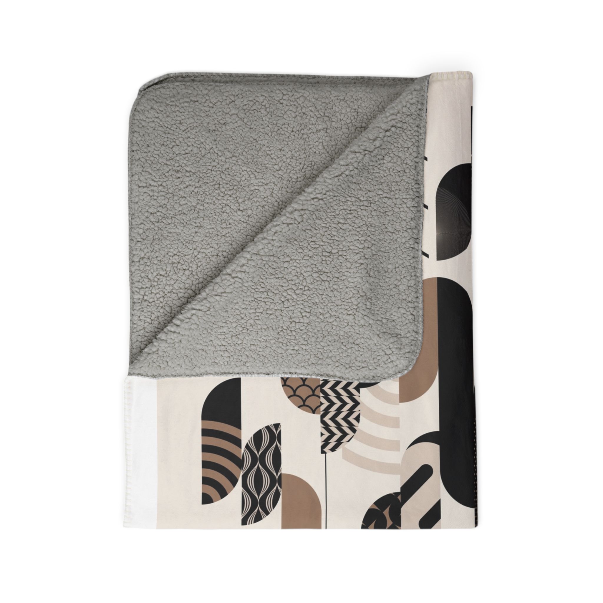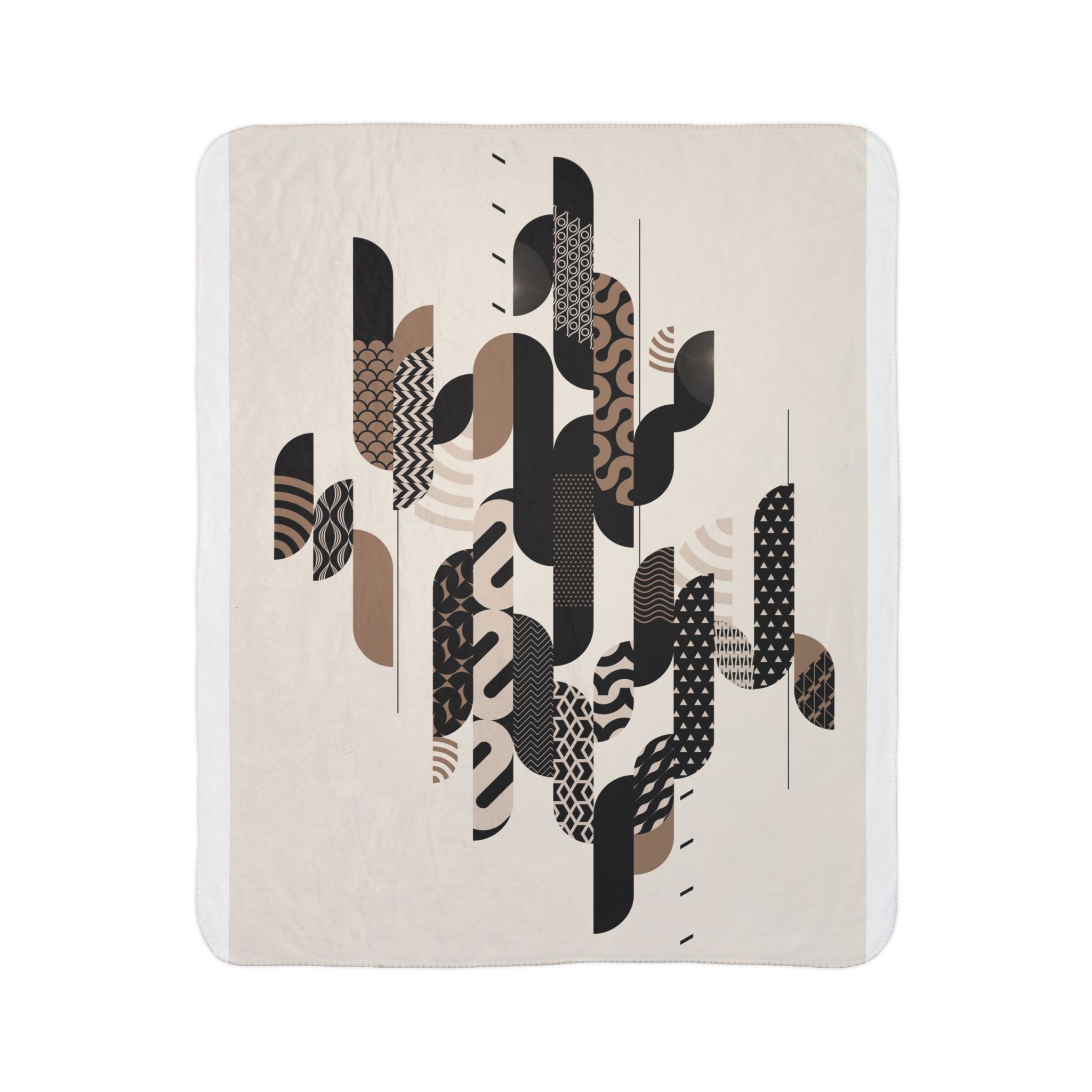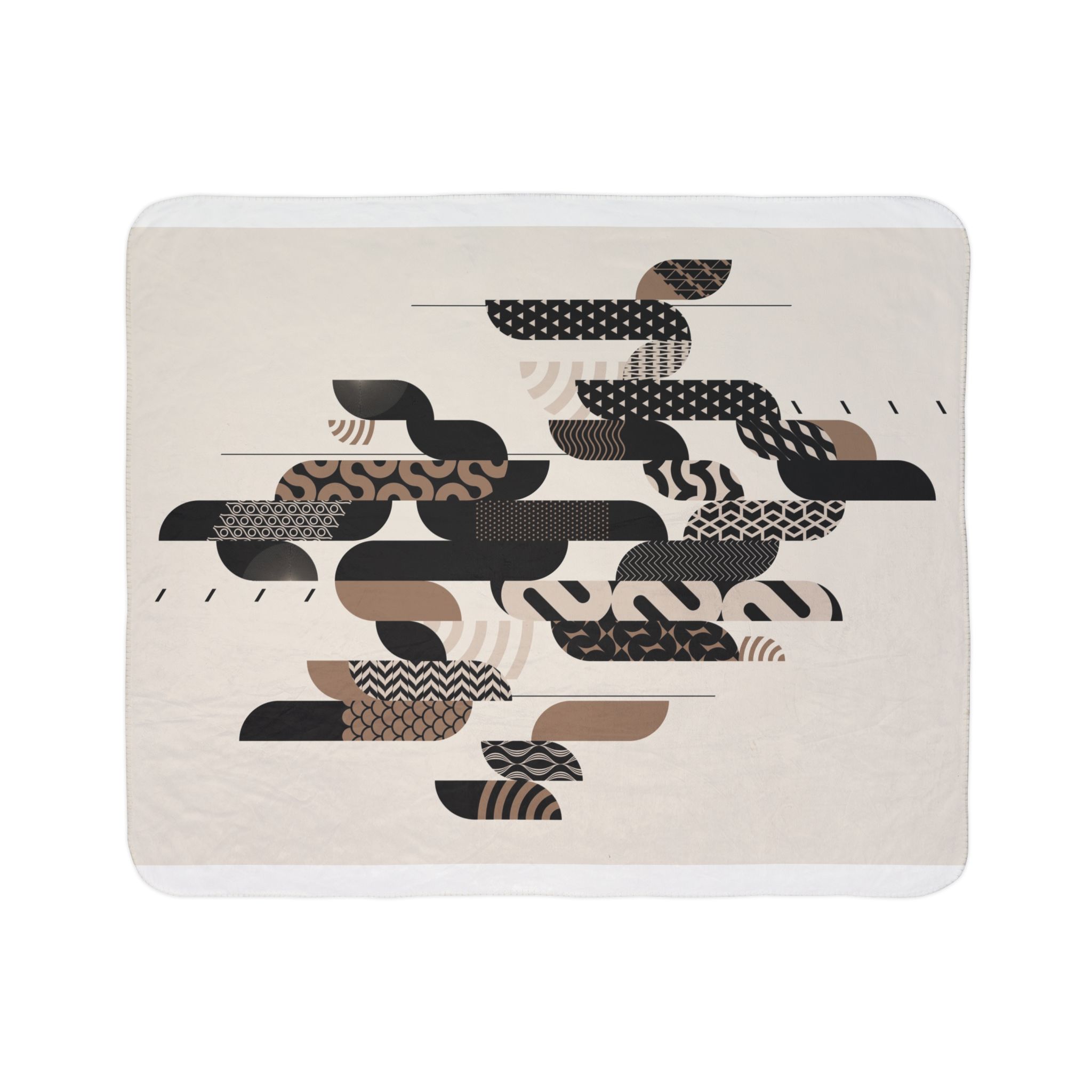 This plush sherpa blanket brings quiet, modern warmth to your favorite corners. Neutral creams, deep blacks, and warm browns weave through abstract organic shapes—soft curves and patterned fills that feel like a calm collage on a chilly evening. Slip it over the back of a sofa during late-night reading, layer it on a bed for added texture, or tuck it around shoulders while sipping tea on a slow morning. The weighty, double-sided fleece holds heat without feeling bulky, and the pared-back palette blends easily with minimalist, mid-century, or boho decor. Each curve and pattern invites a small moment of comfort, turning everyday routines into restful rituals.
