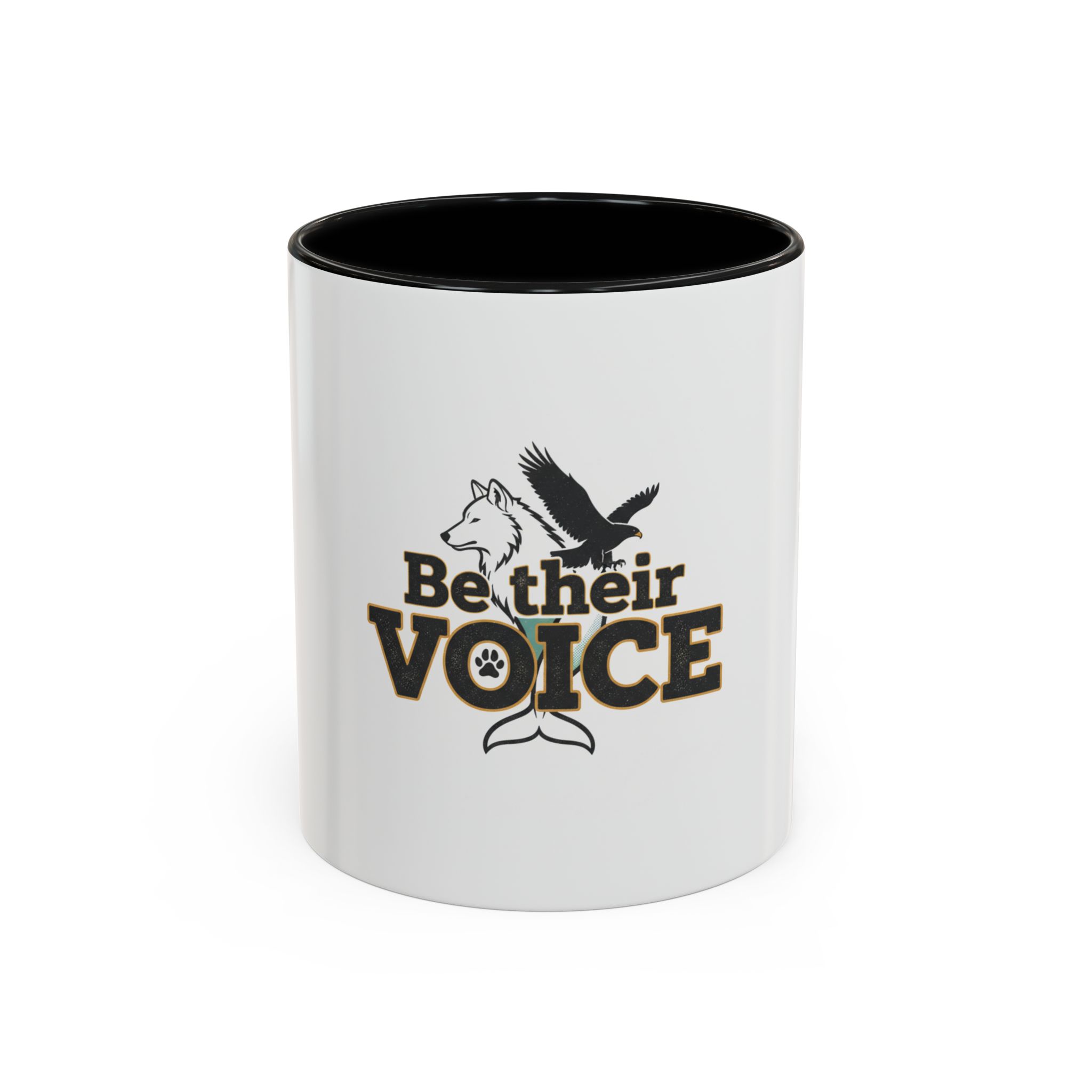 This ceramic accent mug carries a quiet but powerful message—Be their VOICE—framed by subtle animal silhouettes that call to heart-driven advocates. Warm coffee in a glossy white mug that contrasts with a colored handle and interior. The bold, crisp print reads like a little statement at your desk or kitchen table: compassion poured into every morning. It feels steady in your hands, comfortable at the C-shaped handle, and bright enough to spark a conversation with friends, coworkers, or fellow animal lovers. Whether used during a slow morning ritual or handed out at a fundraiser, this mug supports everyday moments of advocacy and connection.