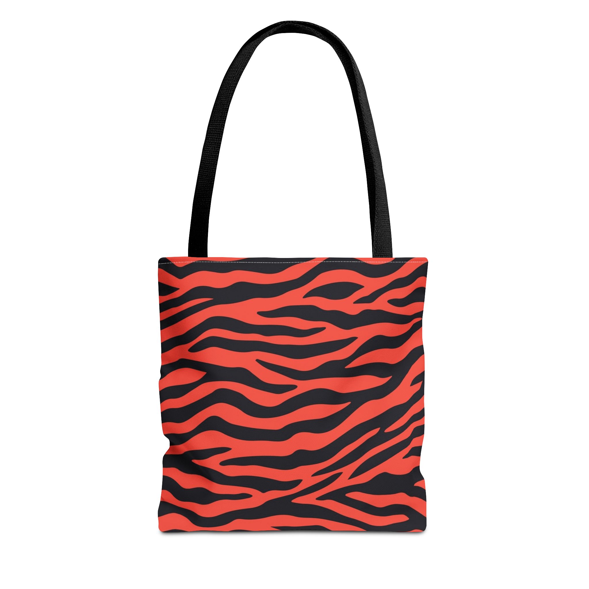 This bold, all-over print tote brings a flash of confident energy to everyday errands. The striking crimson-and-black zebra pattern reads like a fearless accent piece—lively, unapologetic, and built to move with you. Light enough to carry daily, yet structured with boxed corners and reinforced handles to hold groceries, work gear, or market finds without sagging. The smooth polyester face shows the print vividly, while a non-woven laminate inside protects contents and keeps the bag easy to wipe clean. Choose a handle color to match your style and pick the size that fits your routine—this tote layers into mornings at the farmers’ market, nights out with friends, and the small rituals that make a day feel like yours.