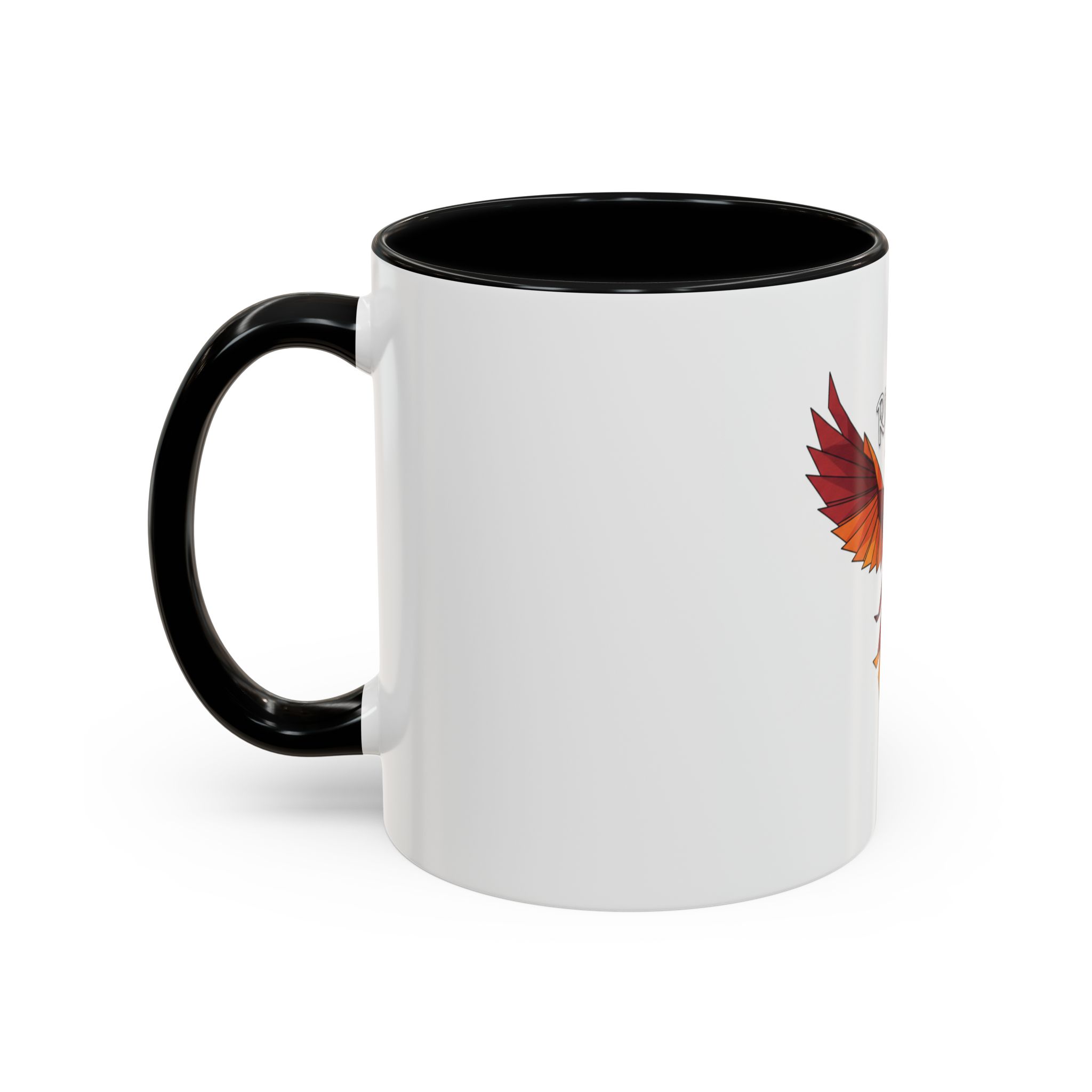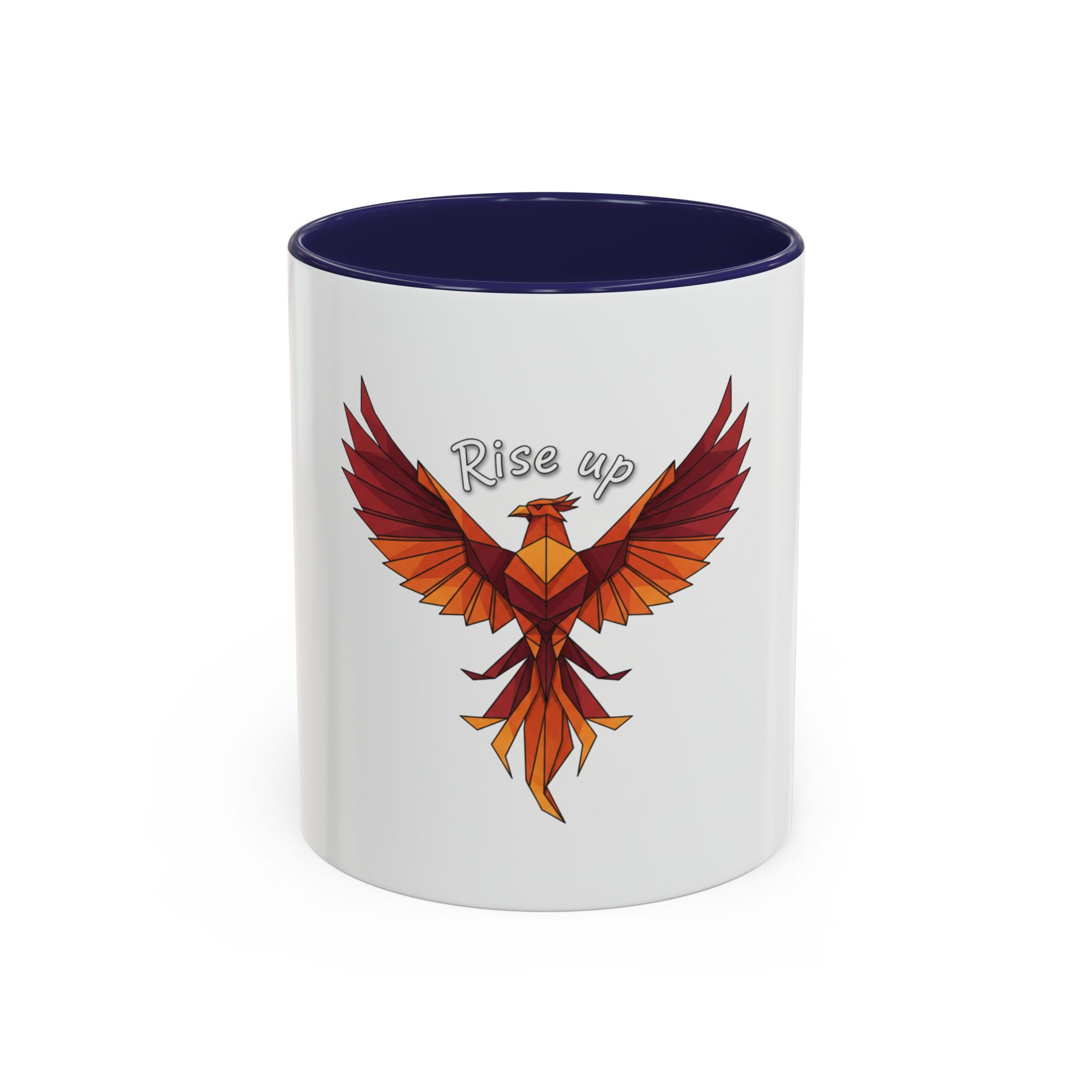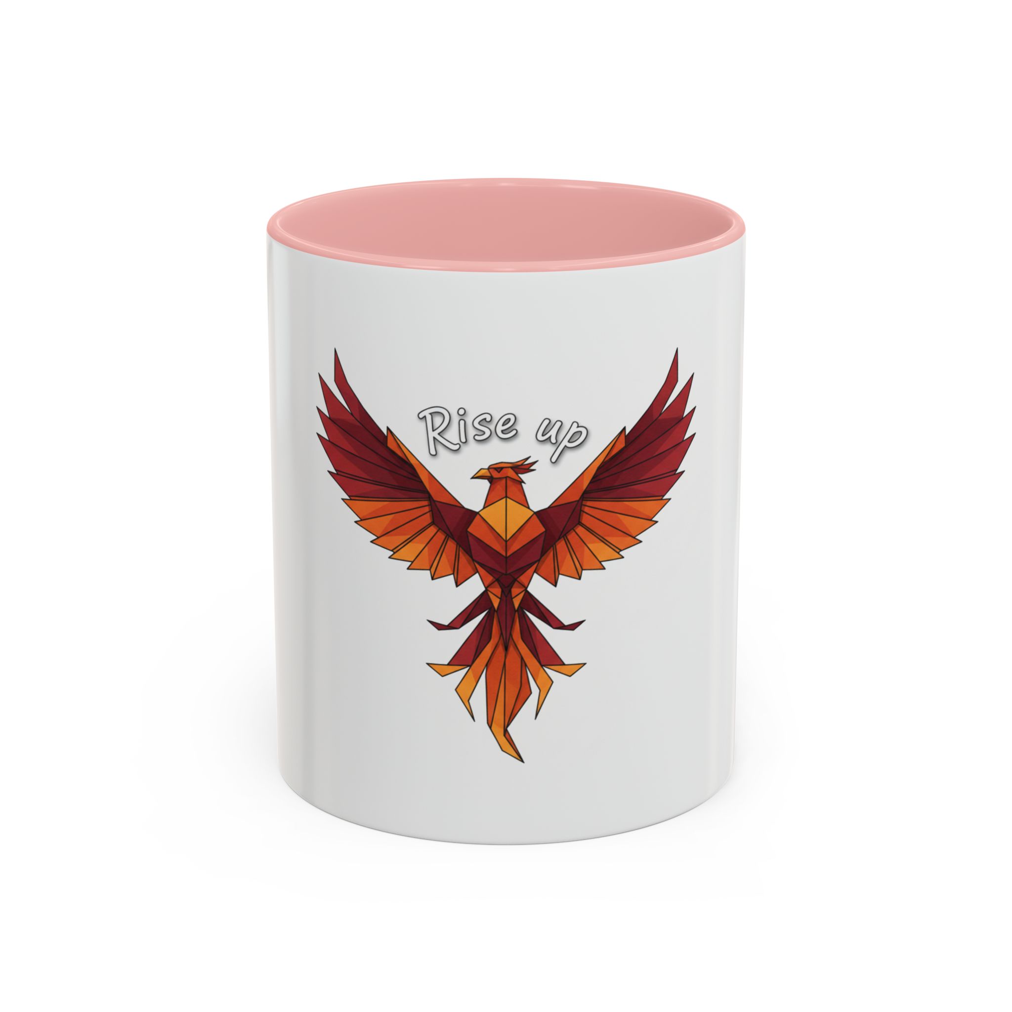 This ceramic accent mug brings a spark of renewal to everyday coffee and tea rituals. A bold, geometric phoenix in warm reds and oranges rises across a clean white field, the words “Rise up” curving above its wings. The colored interior and handle frame the design and add a lively pop when you lift the mug. It’s made to be used — glossy, durable, and safe in both microwave and dishwasher — so the message of resilience becomes part of morning routines, late-night study sessions, or quiet moments on the porch. The vibrant print holds its color, while the comfortable C-shaped handle makes each sip feel intentional. Thoughtful and bright, this mug fits into homes that celebrate small acts of courage and fresh starts.