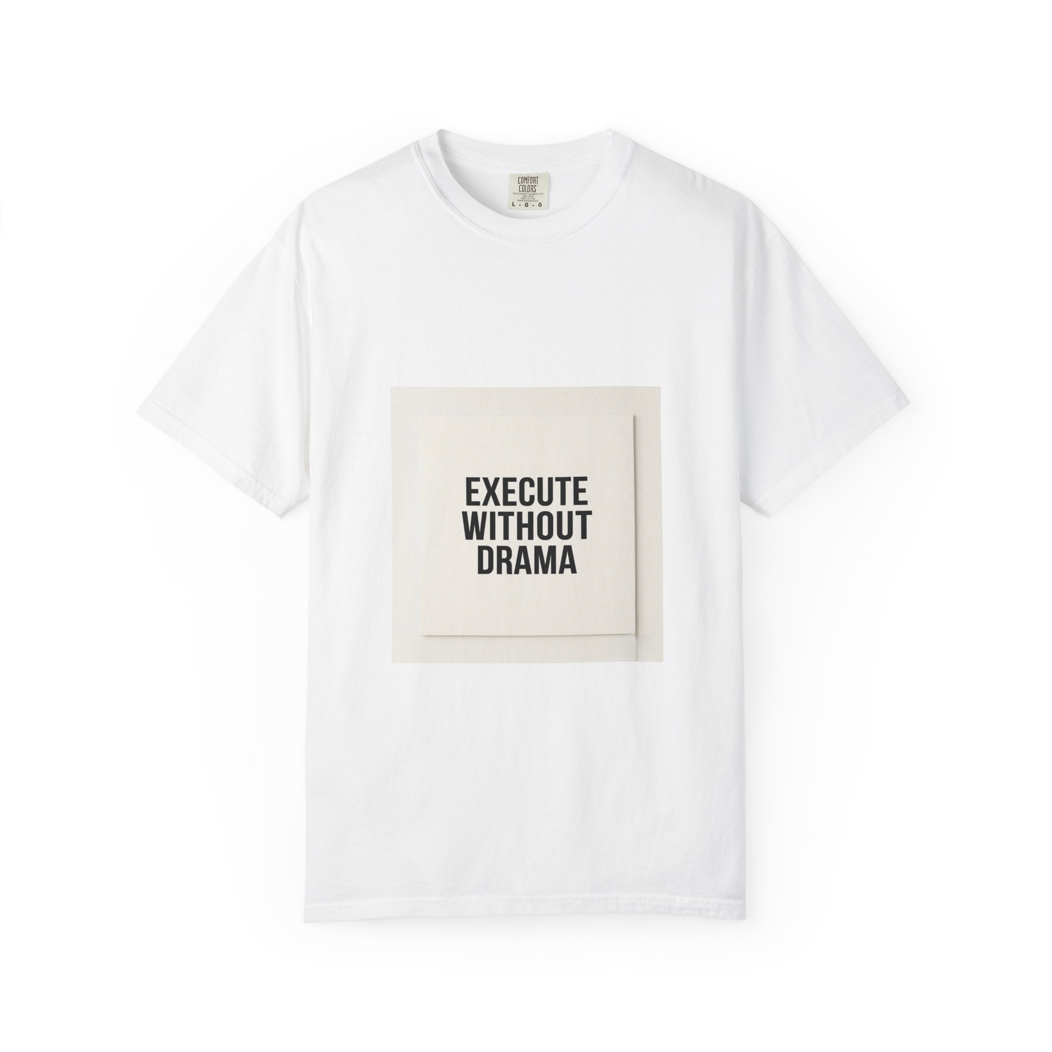 This heavyweight garment-dyed tee carries a quiet confidence. The centered, minimal print — “EXECUTE WITHOUT DRAMA” — reads like a personal motto for people who value focus over fuss. The fabric is soft from the post-construction dyeing, giving each shirt a lived-in feel and subtle color depth. Cut with a relaxed fit and reinforced double-needle stitching, it moves through long days without complaint. Wear it as a steady reminder to keep momentum, whether you’re running a morning meeting, shipping a project, or building routines that last.
