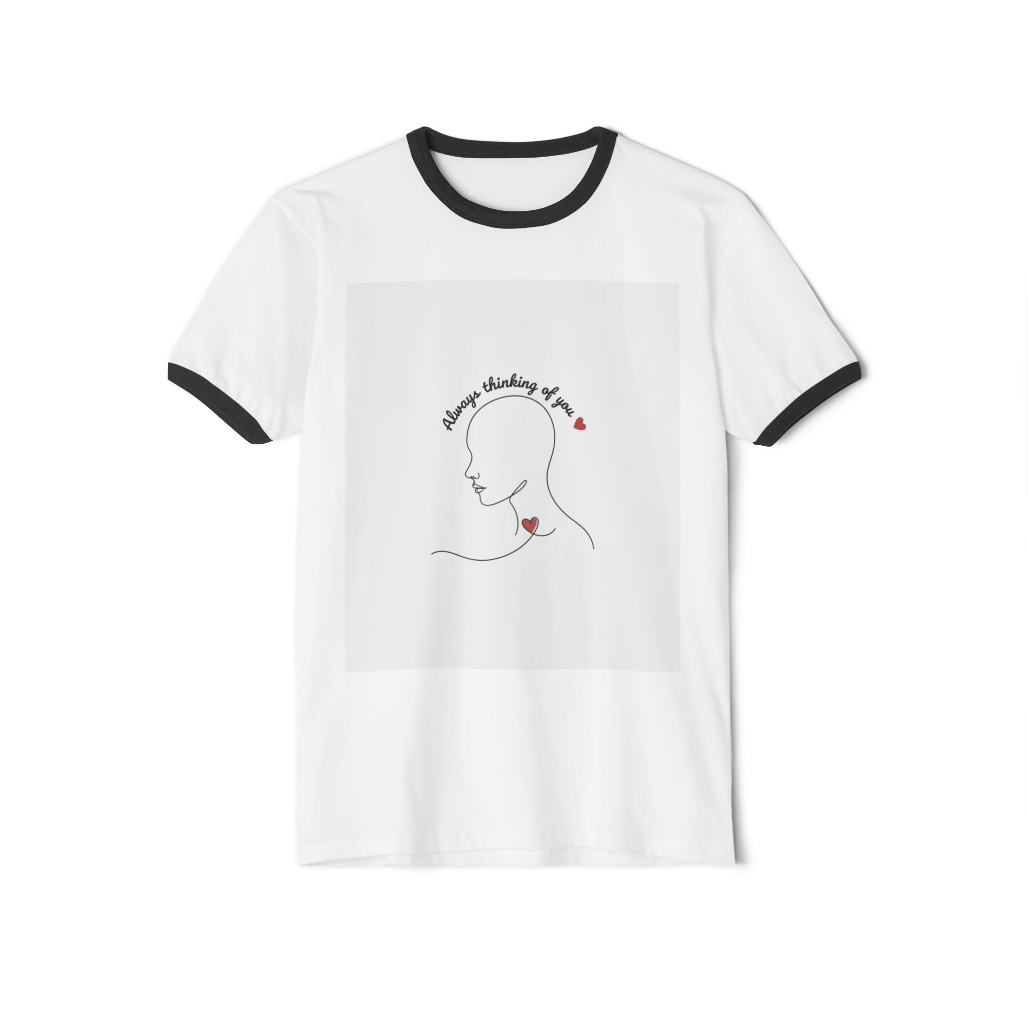 Soft, light, and quietly expressive — this ringer tee carries a minimalist line-art illustration and a tiny heart that makes a subtle statement. The contrast collar and sleeve bands frame the artwork, giving it a nostalgic, retro vibe while the classic fit and breathable cotton keep it easy and wearable all day. It slips into routines effortlessly: layered under a denim jacket for coffee runs, thrown on for low-key museum days, or paired with high-waisted jeans for a gentle, personal statement. The tear-away label keeps the neckline smooth, and the side seams help the shirt hold its shape wash after wash. For someone who prefers gentle design and everyday comfort, this tee feels like a quiet note you keep coming back to.