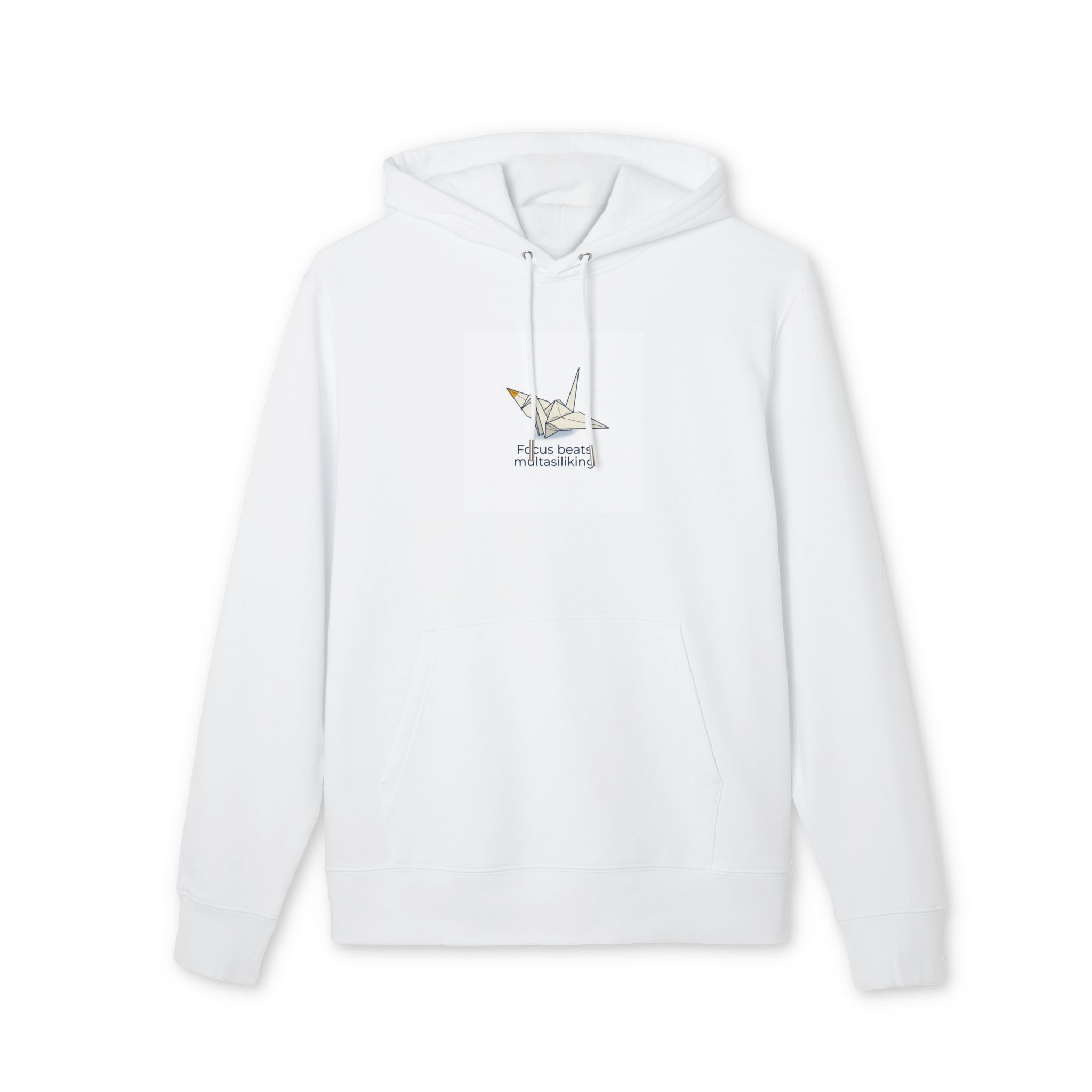 A self-fabric half-moon detail at the back neck adds to the hoodie’s high-end look, while the front kangaroo pocket offers a classic touch. This hoodie is the perfect blend of sustainable materials and thoughtful design, making it an essential addition to your wardrobe.